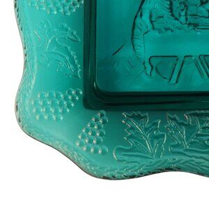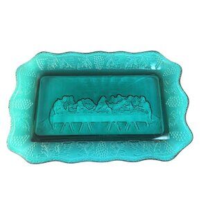 Vintage Indiana Tiara Glass Green Bread Plate With Last Supper Design