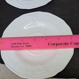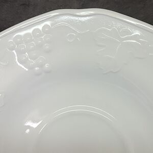 Discover the charm of vintage tableware with this set of 5 Indiana Glass Colony saucers, featuring the classic Harvest Grapes design. Crafted from premium milk glass, these 5 saucers exudes a colonial style that brings a touch of timeless elegance to any setting. Its pristine white color complements the intricate grape motif, making it a delightful addition to your collection or a thoughtful gift for a loved one. In excellent condition. No chips, cracks or repairs. See pictures for details and measurements.