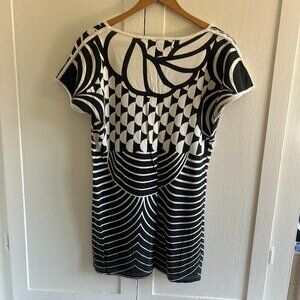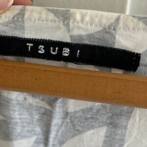 Amazing graphic pop-art mini dress by Ksubi, purchased at Barney's in 2006 right before the brand had to change it's name from Tsubi to Ksubi due to copyright infringement issues. In good used condition (no rips or stains), this mini, oversized cotton t-shirt dress features a fun, pop-art inspired black and white graphic print of a rope that continues from the front to the back. Definitely worn to a Hot Chip concert. Size M.