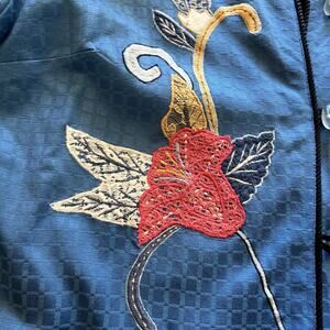 Vintage Indigo Moon women's blue floral embroidered and appliqued art jacket 1X