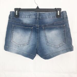 Indigo Rein Forever denim shorts. Dark wash. Low rise. Back pockets only. Stretch. Cotton, polyester, rayon, spandex blend. In good used condition. No stains, tears or holes. Junior's size 5.