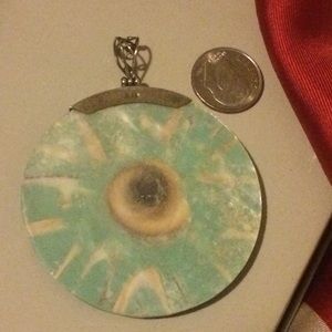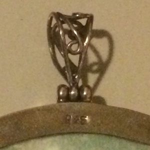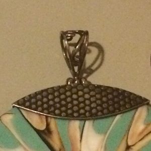 This marble enamel painted shell pendant is a piece I am sad to part with from my collection, but I don’t wear it enough. The sterling silver (9.25) vine patterned bail and textured detail at the top of this piece make this piece versatile for use on a chain, ribbon, or cord depending on the vibe you are going for.