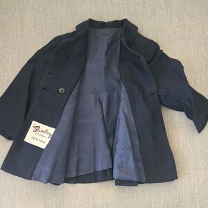 Vintage Infant Coat & Bonnet Set Navy Blue 1950s Double-Breasted Pleated