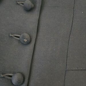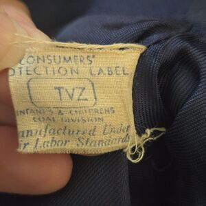 Step back in time with this exquisite mid-century infant coat and bonnet set, crafted in a rich navy blue wool blend and finished with thoughtful details that speak to its era. The coat features a classic double-breasted front with six matching buttons, a softly rounded collar, and a gently pleated hem that adds movement and charm. The coordinating bonnet ties securely under the chin and frames the face with a wide, protective brimperfect for chilly strolls or heirloom portraits.