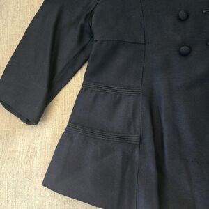 - Features: Double-breasted front, pleated hem