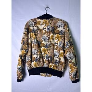 Vintage Infinity Chic Allover Dog Print Full Zip Bomber Jacket One Size