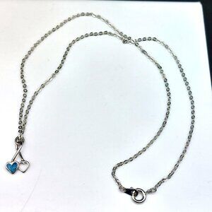 Vintage Infinity Double Heart Pendant Necklace With Turquoise Accent 16" Chain L