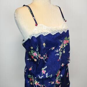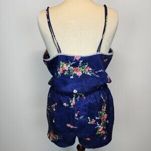Vintage Inner Most Floral Satin Pajama Set Size XL Blue Lace Trim Chemise Shorts