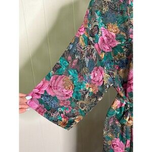 Stunning Vintage Inner Most Shorts, Cami, and Robe Set in Green and Pink Floral