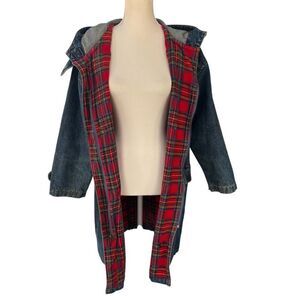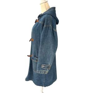 Vintage Inner View Women's Denim Duffle Coat With Hood Toggle Closures & Plaid