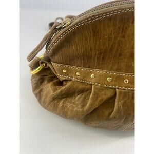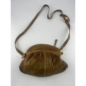 Vintage Innue Purse Tan Brown Italian Leather Crossbody Bag Medium Boho Zipper