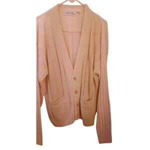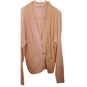 Vintage Insite Men's Cardigan V-Neck Cable Knit Sweater XL Cream Color, Pockets, Ribbed Knit, Button Front
