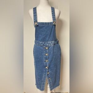 Vintage Inspired Blue Denim Women's Overall Dress With Button Front Sz Medium