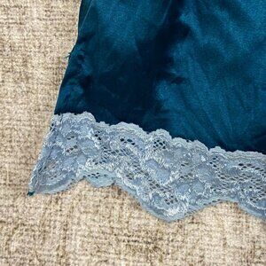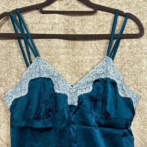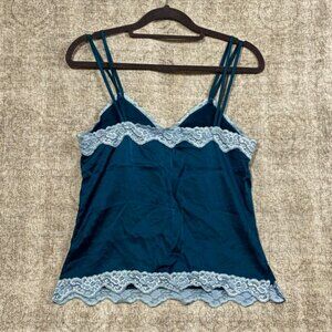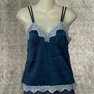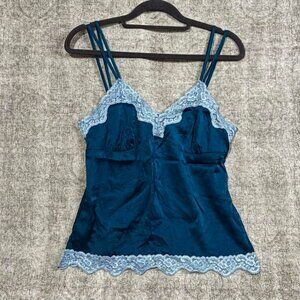 Vintage Inspired Blue Lace Trim Cami Tank Satin Sheer Top Small