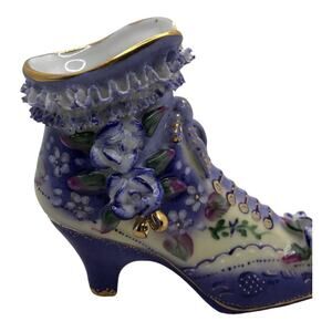 Vintage Inspired Ceramic Lace Ruffle Vivid Violet Flowers Boot Limoges