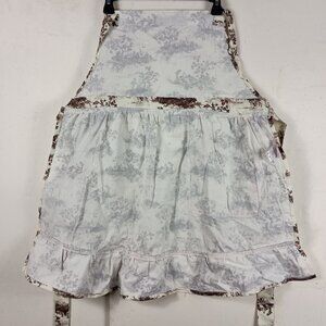 Charming kitchen apron with a detailed toile countryside print and pink accents. Convenient front pocket and adjustable ties for functionality.