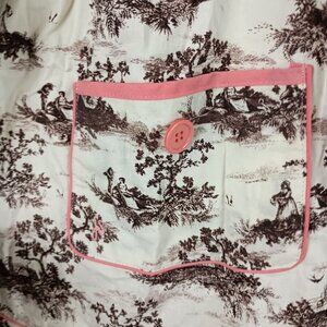 Vintage Inspired Country Toile Cotton Apron With Pink Button Pocket & Ties