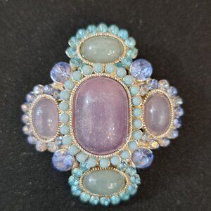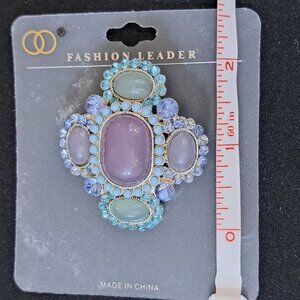 This brooch features a stunning combination of purple and blue gemstones, ideal for adding a touch of elegance to any outfit.