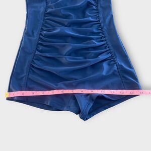 Vintage Inspired Halter One Piece Swimsuit Blue Ruched Retro Style Size M
