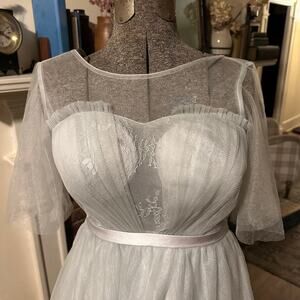 A beautiful alternative to traditional white, this soft silvery gray dress is perfect for brides, bridesmaids, or anyone wanting a romantic, fairytale look.