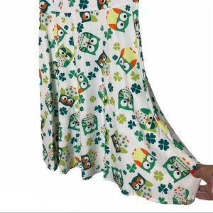 Vintage Inspired Owl and Clover Sleeveless Flared Skirt Dress