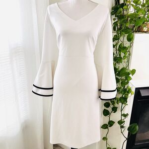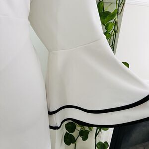 Vintage Inspired Retro 60's Style White Black Trim Bell Sleeve Dress Plus 2X 3X
