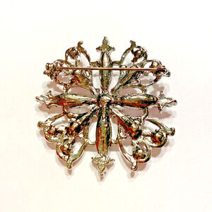 Vintage Inspired Silvertone & Pink Rhinestone Brooch Romantic Edwardian Look