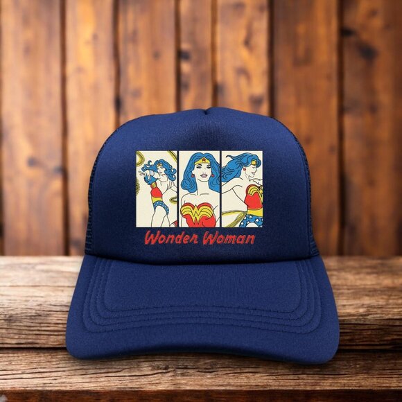 Vintage Inspired Wonder Woman Unisex Trucker Hat Navy Snapback Comic Book Cap