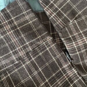 These Matty M cropped trousers bring back that Y2K preppy plaid vibe with a touch of modern city chic. Featuring a brown plaid base with subtle beige and white checks, they’re sleek, versatile, and easy to style for casual or dressy looks.