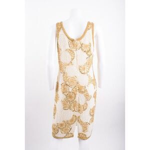 Vintage Interlude CA Womans Evening Shift Dress Size M Ivory Gold Beaded Silk