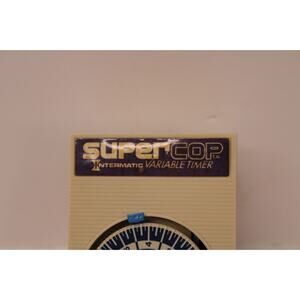 The Vintage Intermatic Super Cop is a 24-hour automatic variable timer wall switch suitable for wall mounting in any room. It features a rotary switch style, a dial control style, and a beige glossy finish. This unit has a 2-pin plug type and operates on 125 volts AC with a maximum amperage of 15 amps. It includes timer and dusk-to-dawn cycle features, making it ideal for light control applications.