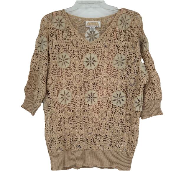 Vintage International Apparel Mart Crochet Open Knit Sweater Pink Cottagecore L