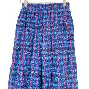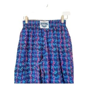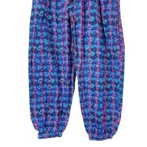Features: Cotton abstract 80s retro fabric. Elastic stretch waist band. baggy relaxed leg. Elastic cuff ankle hem. Pull on.