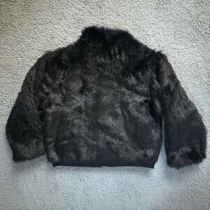 Here is a Vintage International Male Faux Fur Coat in size XXL in Black Fur. This rare bomber jacket is fully Lined and in excellent pre-owned condition. There are no issues to report. Truly fantastic condition.