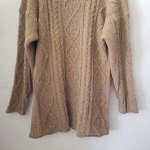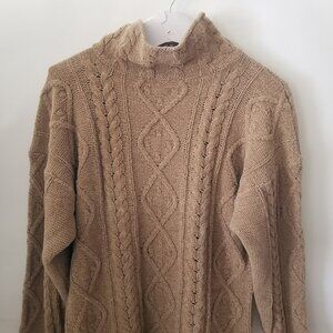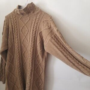 Vintage International Mens L XL Beige Long Sleeve Cable Knit Turtleneck Sweater
