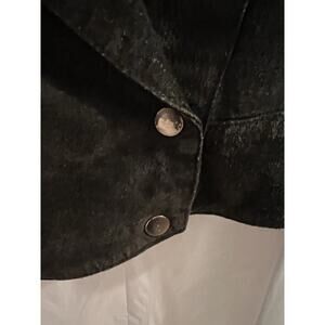The jacket is lined with nylon and has a vintage feel that makes it perfect for those who love the rock, hippie, punk, or grunge style. This jacket is a perfect addition to any wardrobe and is sure to make a statement. It's easy to care for and should only be dry cleaned. The jacket is available in size M and is perfect for women who love the biker, metal, or gothic theme.