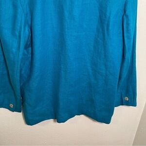 Great condition. Vintage. International Scene. One button blazer. Teal blue green color. Feels like linen. Size 6. Pit to pit laying flat 20” Shoulder to hem 27” Sleeve (shoulder seam to hem) 21”. All measurements are approximate and taken lying flat. Smoke free home. No trades, offers welcome.