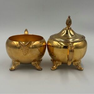 Vintage International Silver Company 24k Gold Plated Creamer and Sugar Bowl Set