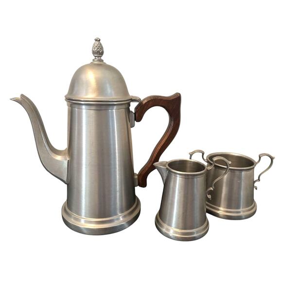 Vintage International Silver Company Pewter Coffee Tea Pot Creamer Sugar Set USA