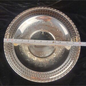 Vintage International Silver Company silver plated tray. Crafted by WM Rogers & Son in the mid-1900s. It features beautiful, engraved patterns, reticulated raised edge, and a rope twist border. Approximate measurements: 12 in x 12 in x 1 in. Please see the provided photos for further details.