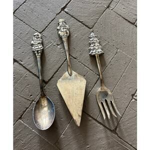 Vintage International Silver Company Snowman Christmas Tree Santa Clause Serving Set of Three
