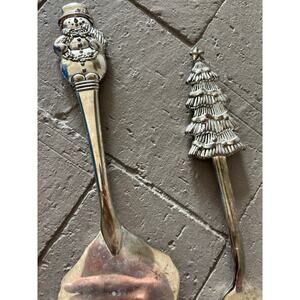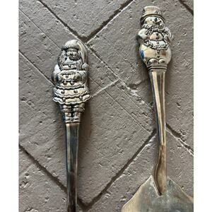 Vintage International Silver Snowman Christmas Tree Santa Clause Serving Set