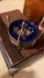 Vintage Interpur Blue Porcelain Coaster Set of 4 w Gold Accents Japanese Peacock