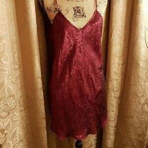 Beautiful wine red paisley embossed spaghetti strap long chemise.