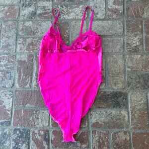 Vintage Intimate Attitudes Lace Lingerie Bodysuit Snap Size 1X Fuchsia