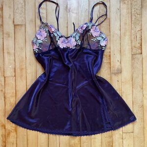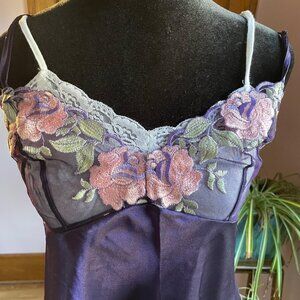 Vintage Intimate Attitudes Slip Dress Purple Floral Lace Y2K Coquette Fairy Club