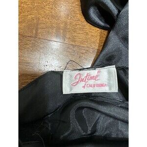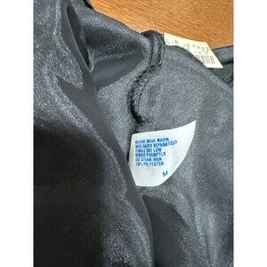 New old stock with the tags Vintage and black lingerie size medium has a front slit. Hundred percent polyester and machine wash warm.