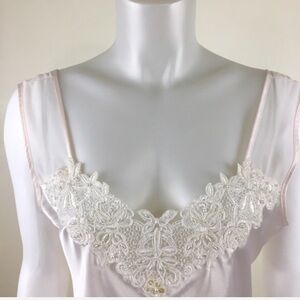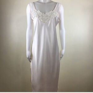 Vintage Intimo Amore Pink Lace Trim Satin Nightgown Size Medium