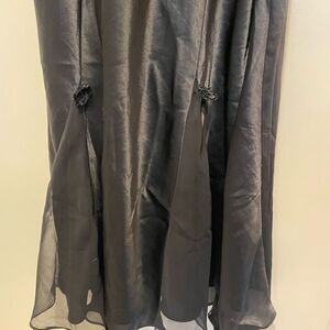 VTG Intimo Amore Size L Beaded Satin Nightgown Chemise Black Sheer Honeymoon with flared pleating sheer design at bottom longer style adjustable straps