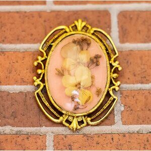 Vintage Intricate Abstract Flower Round Oval Gold Tone Brooch